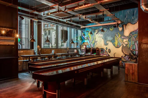 Our 12,500ft open plan venue, complete with 1large bar, shuffleboards, retro arcade games, a pinball machine, microbrewery and more. A unique location between Tower Bridge and London bridge, perfect for any occasion. Our range of different areas as well as different drinks and dining packages can all be tailored to meet the needs of your party.